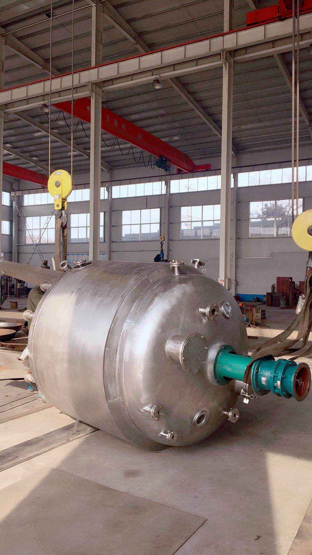 反應釜材質一般有碳錳鋼、不銹鋼、鋯、鎳基(哈氏、蒙乃爾)合金及其它復合材料。反應釜可采用SUS304、SUS316L等不銹鋼材料制造。攪拌器有錨式、框式、槳式、渦輪式,刮板式,組合式,轉動機構可采用擺線針輪減速機、無級變速減速機或變頻調速等,可滿足各種物料的特殊反應要求。密封裝置可采用機械密封、填料密封等密封結構。加熱、冷卻可采用夾套、半管、盤管、米勒板等結構,加熱方式有:蒸汽、電加熱、導熱油,以滿足耐酸、耐高溫、耐磨損、抗腐蝕等不同工作環境的工藝需要。而且可根據用戶工藝要求進行設計、制造。